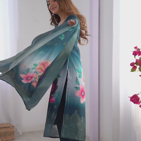 Step into elegance with this Designer Chanderi Silk Co-ord Set, blending luxurious fabric with intricate jacquard weaving and vibrant digital prints. Designed for comfort and style, it’s perfect for festive occasions, weddings, and elegant gatherings.
