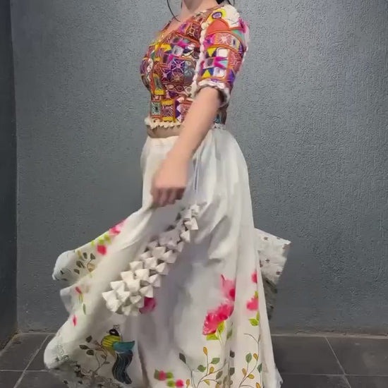 Heavy Boutique Semi-Stitched Lehenga Set – Reyon, Digital Print, Mirror & Lace Work
