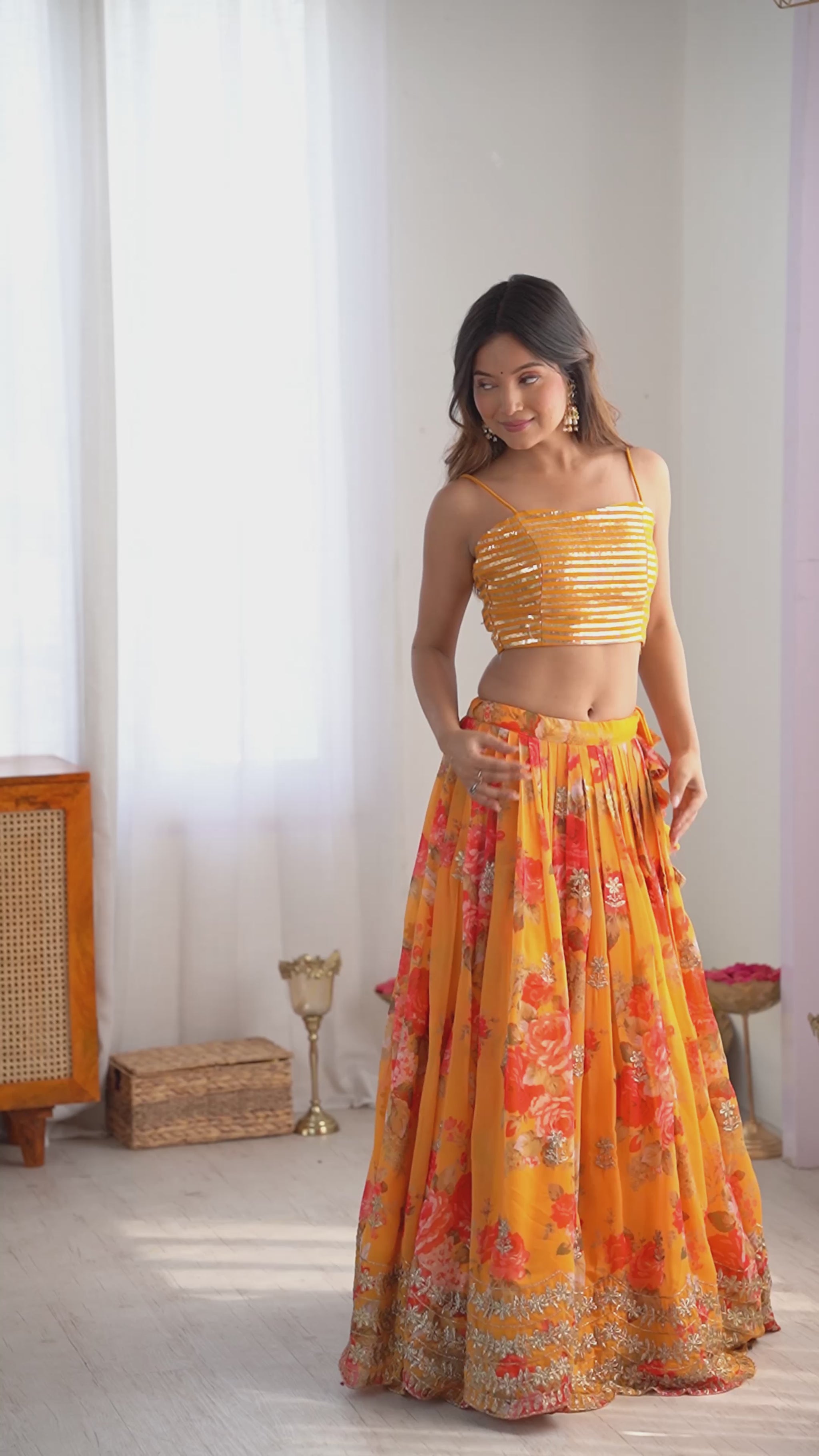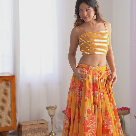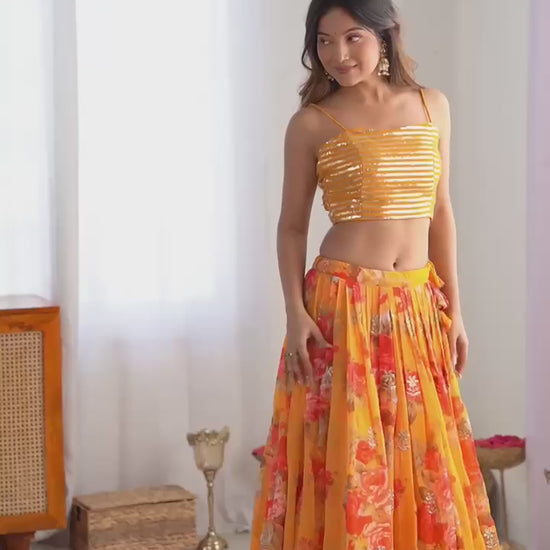 Liecryart Faux Georgette Semi-Stitched Lehenga with Koti – Digital Print, Thread & Sequence Work, Wedding & Festive Wear
