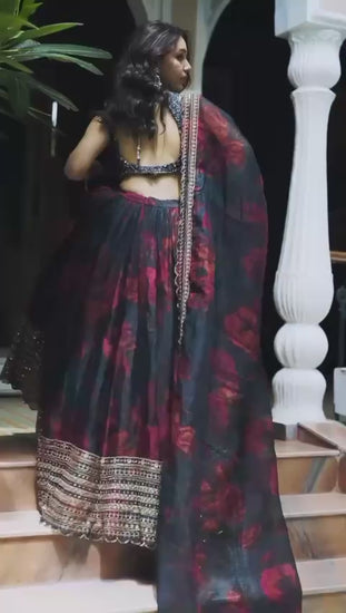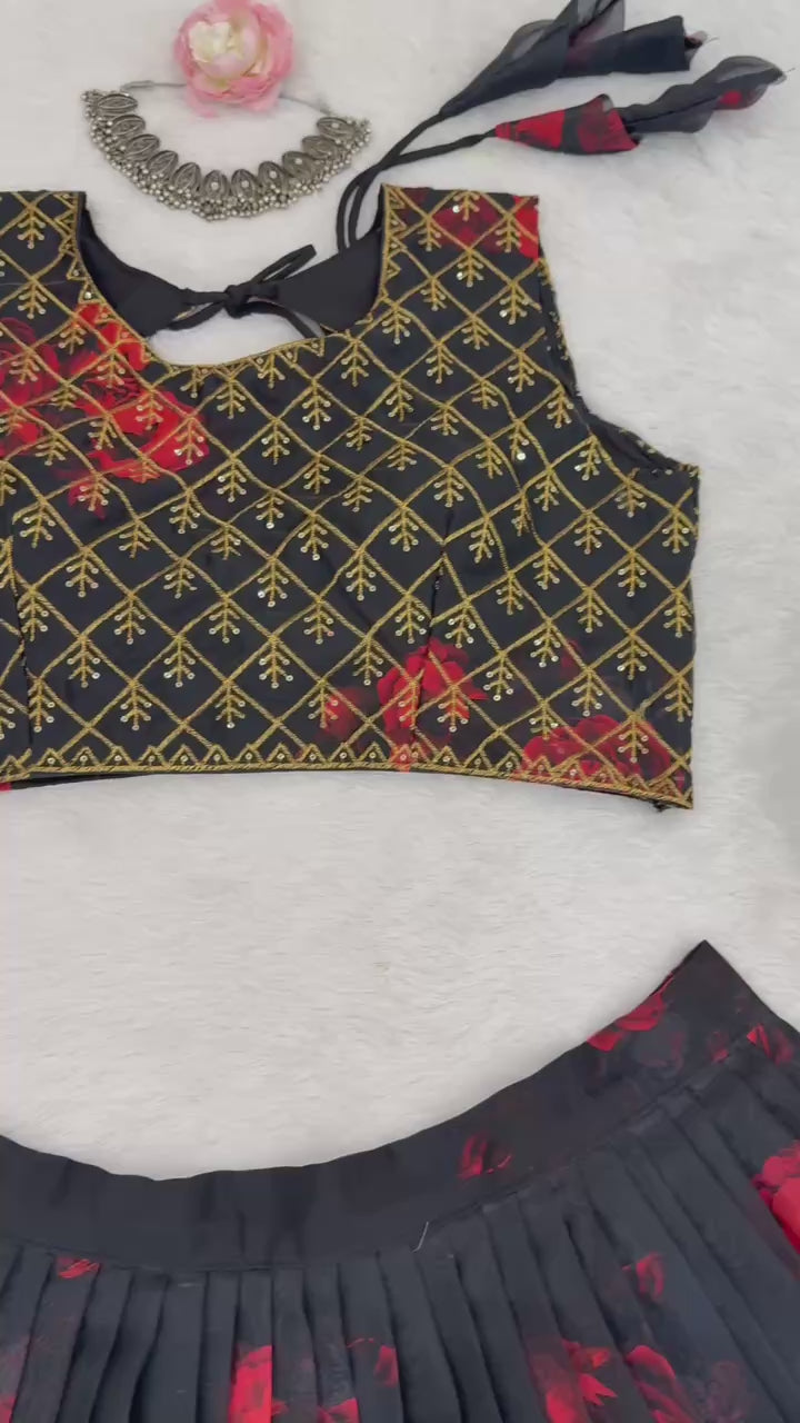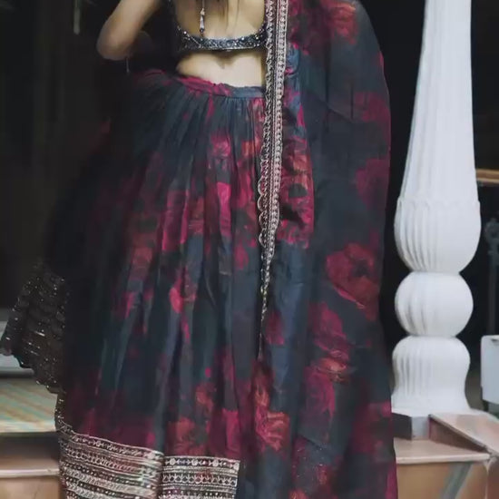 Liecryart Premium Reyon Semi-Stitched Lehenga Set – Digital Print, Mirror & Lace Work, Wedding & Festive Wear
