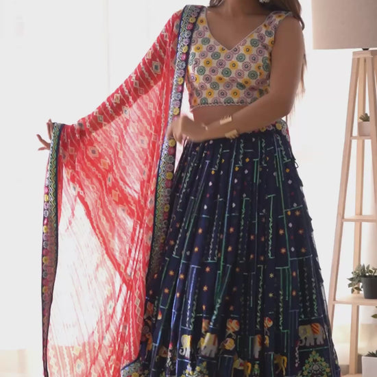 Liecryart Faux Georgette Semi-Stitched Designer Lehenga – Thread & Sequence Work with Heavy Lace, Digital Print Dupatta