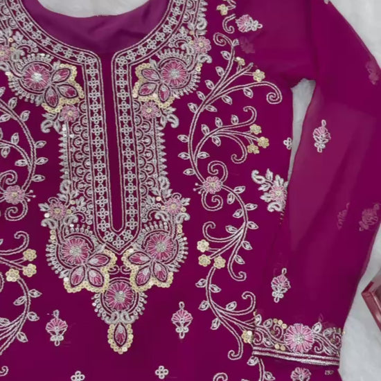 Premium Faux Georgette Sharara Set – Thread & Sequin Work | Front & Back Embroidery | With Dupatta